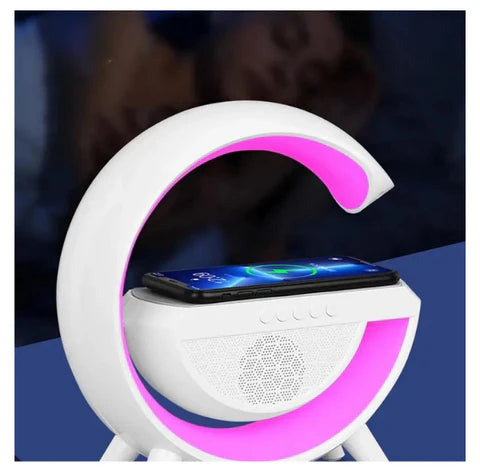 مصباح مع شاحن لاسلكي مدمج بمكبر صوت