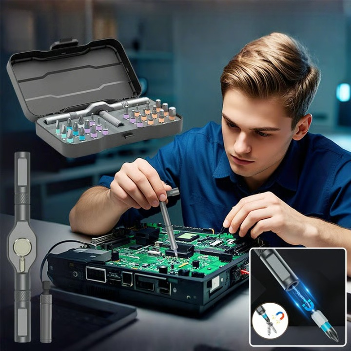 اتوليي صغيرة تديها معاك كلما ديبلاصي فيها 24 قطعة مفك براغي مغناطيسية لي تضمنلك انو تركب لي بولون مليح بلا مايزيدو يبوجيو